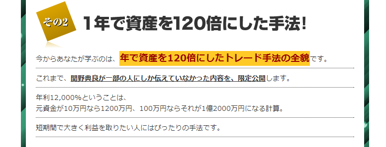 資産が120倍(クロスリテイリング社販売の恋スキャFXのページより)