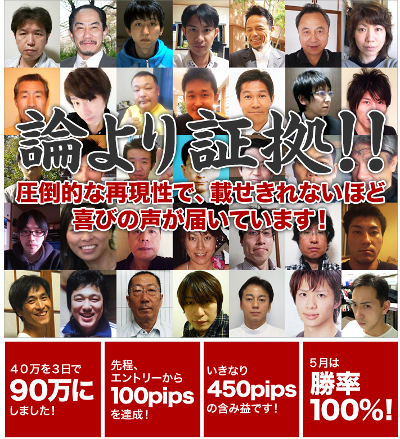 勝率100%(クロスリテイリング社販売のトレードハンターFXのページより)