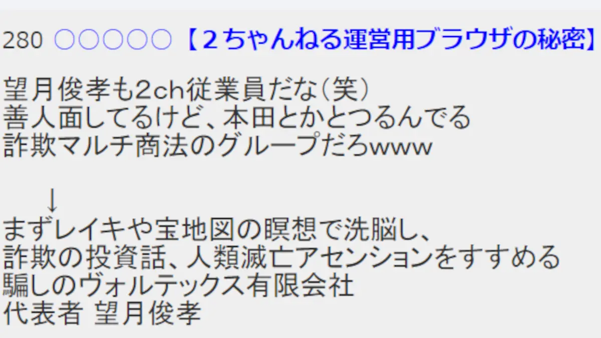 望月俊孝の評判を調べると、怪しい評判が投稿されているのがわかりました。(本記事冒頭画像を参照)。もちろん本サイトは望月俊孝がそういうことをしていると断言するものではありませんが、こういう評判が投稿されることの意味をよくよく考えたほうがよいでしょう。