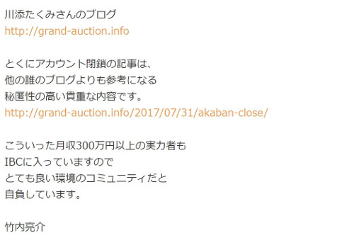 稼いでいないのに稼いでいるフリをして高額なセミナー料を詐取しているグループが跳梁跋扈していますが、竹内亮介と川添拓己のグループがそうでないことを祈るばかりです。