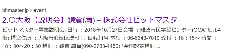 これは事実です。だって、アディマクラウンの代表者の鎌倉庸臣は、ビットマスターの認定講師を勤めていたじゃないですか。↓