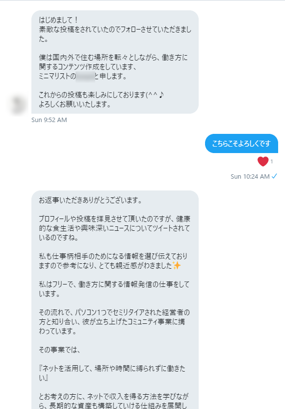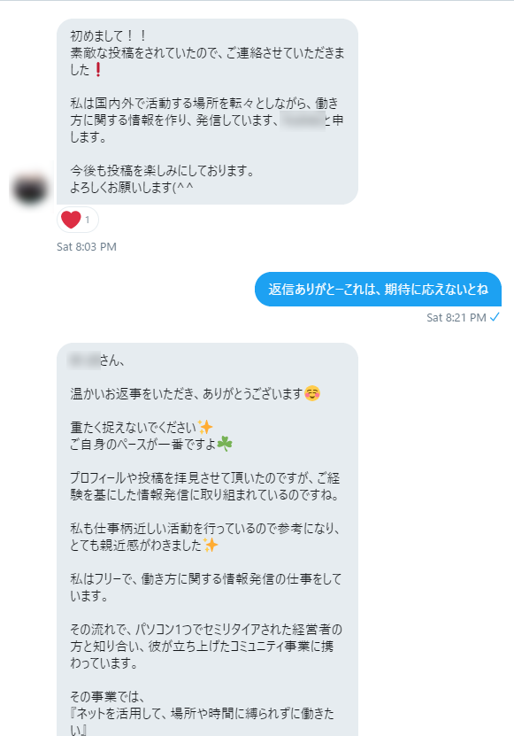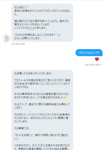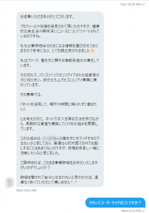 数日後に他の方から同じようなメッセージのやり取りがありました。