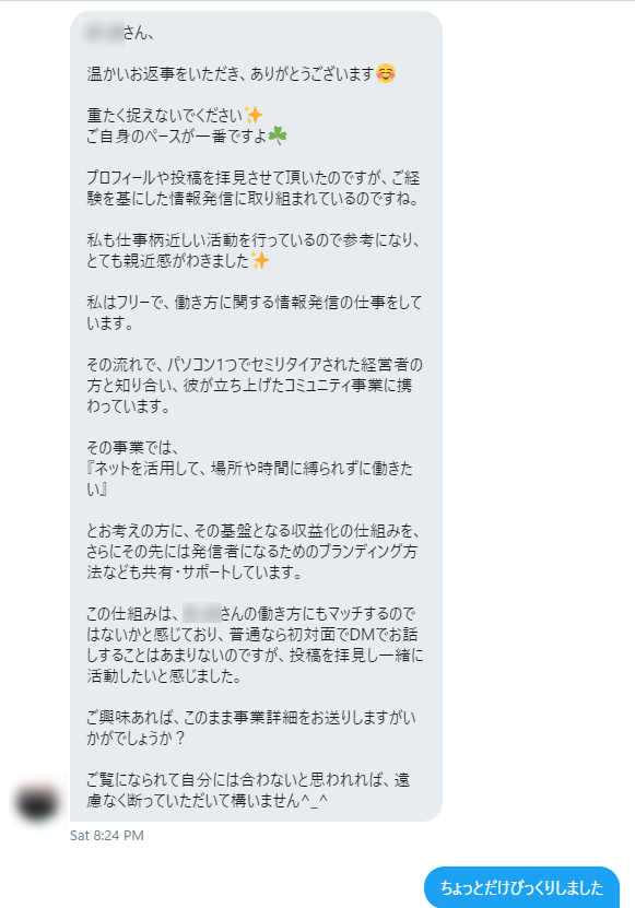 その後、無料のオンラインで説明会があるので参加してほしいとのメッセージが来て話をきくだけならと僕は、「OK」を出しました。