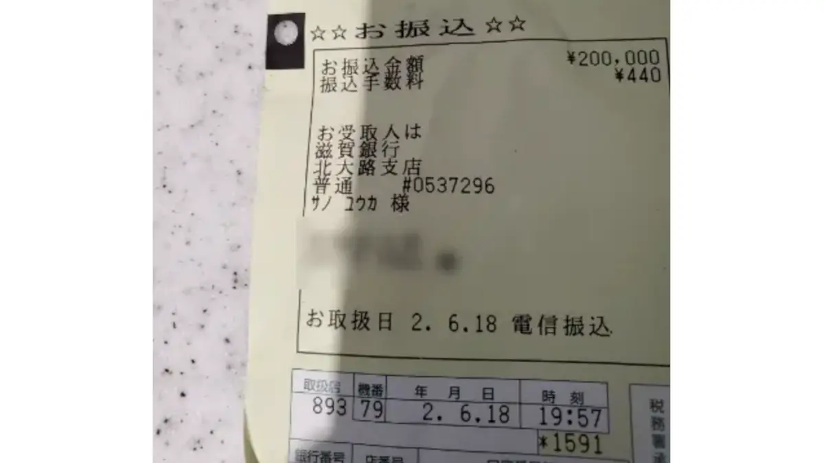 その言葉に私はいくら必要なの?と尋ねるととりあえず20万円とのことで、そのくらいならと6/18に相手に20万円を振り込んでしまいました。