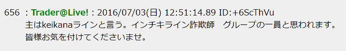 山口大佐(Keikana Line株式会社)のFXは怪しいという評判があるので注意喚起します。『未来の値動きを予測可能なテクニカルKeikana Line』と銘打ってはいますが、これは嘘です。未来の値動きを予測することなど不可能なのですから。Keikana Line株式会社でFXをやっても稼げるとは思えません。Keikana Line株式会社でFXをやることはお勧めしません。Keikana Line株式会社でFXをやるなら止めませんが、検討は慎重に行った方がよさそうです。