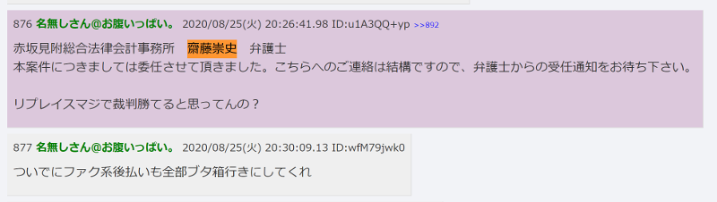 他にも、後払い(ツケ払い)現金化業者・闇金業者・ファクタリング業者の被害を訴える掲示板に、赤坂見附総合法律会計事務所,齋藤崇史弁護士の名前が頻繁に登場していることにも言及しておかなければなりません。
