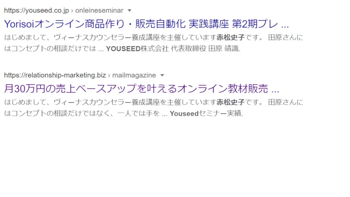 結論から言うと、株式会社ハートフルR&A,赤松史子,コーチ・アヤコは怪しいです。怪しいと思える最大の理由は、株式会社ハートフルR&A,赤松史子は、YOUSEED株式会社(田原靖識)にプロデュースされているという事実があるからです(本記事冒頭の画像を参照してください)。YOUSEED株式会社(ユーシード)がプロデュースしている起業家の中に、怪しい情報商材を売っている人間が紛れこんでいた事実は以前紹介した通り。その記事内でも紹介されているとおり、「アダルト動画(野外露出など)を投稿して年収1000万円を稼ぐ方法」を解説した情報商材を販売していた怪しい女性を、田原はプロデュースしているのです。インチキデタラメと思われても仕方がない女性をプロデュースしていた人間にプロデュースされているのが株式会社ハートフルR&A,赤松史子,コーチ・アヤコなのです。