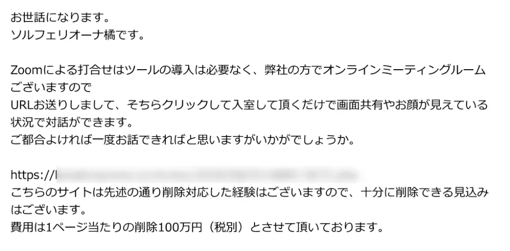 「100万円の料金を自分らに払ってくれれば、当サイトの記事を消すことができる。」