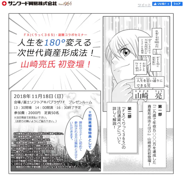 怪しいと思う理由の一つに、株式会社一心,山崎亮がサンワード貿易で講師を務めているという事実があげられます。この会社は非常に評判が悪い商品先物取引業者です。この口コミを参考にしてください。