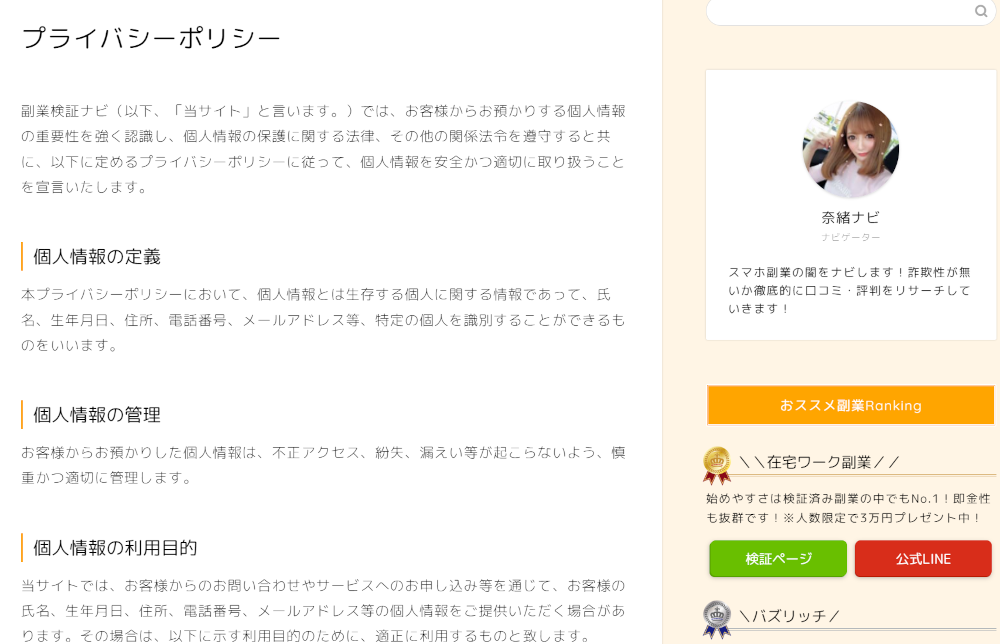 佐々木奈緒=奈緒ナビが運営するブログ副業検証ナビ(https://karibunipinel.com/)は怪しいので気を付けてください。こちら、佐々木奈緒=奈緒ナビ(偽名の可能性あり)という方が運営する副業を紹介するブログなのですが、なんと、詐欺のような副業を推薦しているブログだったのです。佐々木奈緒の奈緒ナビが推薦している「バズリッチ」や「エニタイムジョブ」は詐欺なので絶対に料金を払わないようにしてください。佐々木奈緒の奈緒ナビが怪しい理由を方は、本記事を読む進めてください。