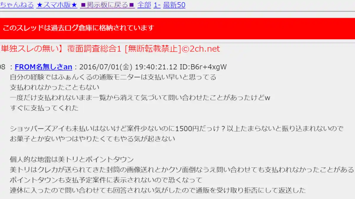 多くの詐欺まがいの副業をすすめるサイトなどと違い、ポイ活としてよく名のあがる企業は大手の通販やメーカー、マーケティング企業などが多いため、特にスキマ時間が多い主婦などには人気となっています。そういう意味で、美トリも特にエステやコスメ、そしてサプリメントなど女性と相性が良いものも多く、その為に登録する方も多いのですが、反面、美トリはサクラ? と思われるような人々のちょっとわざとらしい口コミがあったり、匿名掲示板で支払いが煩雑でなかなか払われない、そのせいで諦めたこともある、非承認にされた、という評判がちらほらと見受けられます。(本記事冒頭画像を参照)