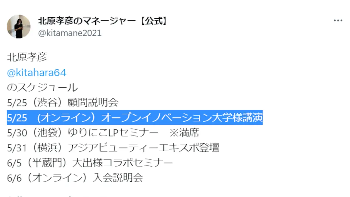 特に北原などは300万円以上の料金を取りながら中身がデタラメだということで炎上しています。オープンイノベーション大学は確かに無料なのでしょう。しかし後になって300万円の料金がかかるコースに誘導されないとも限りません。本当に無料かどうか、本当にデメリットがないかどうか、よくお考えいただくことをおすすめします。