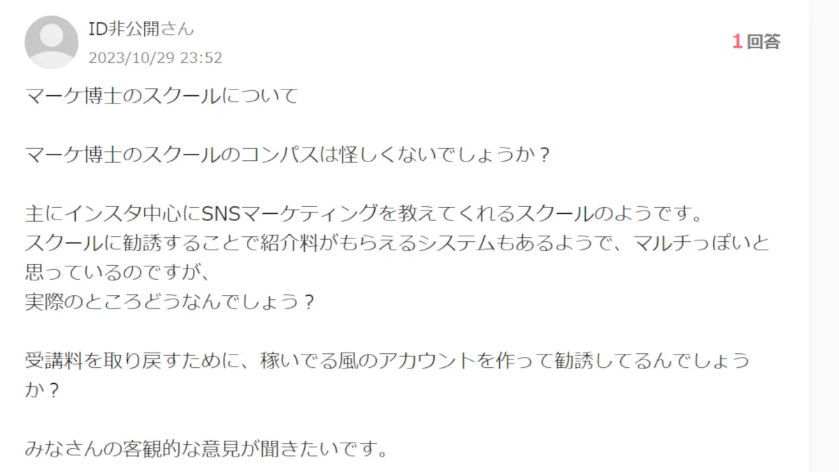 続いてマーケ博士の師匠についての口コミもご紹介しましょう。