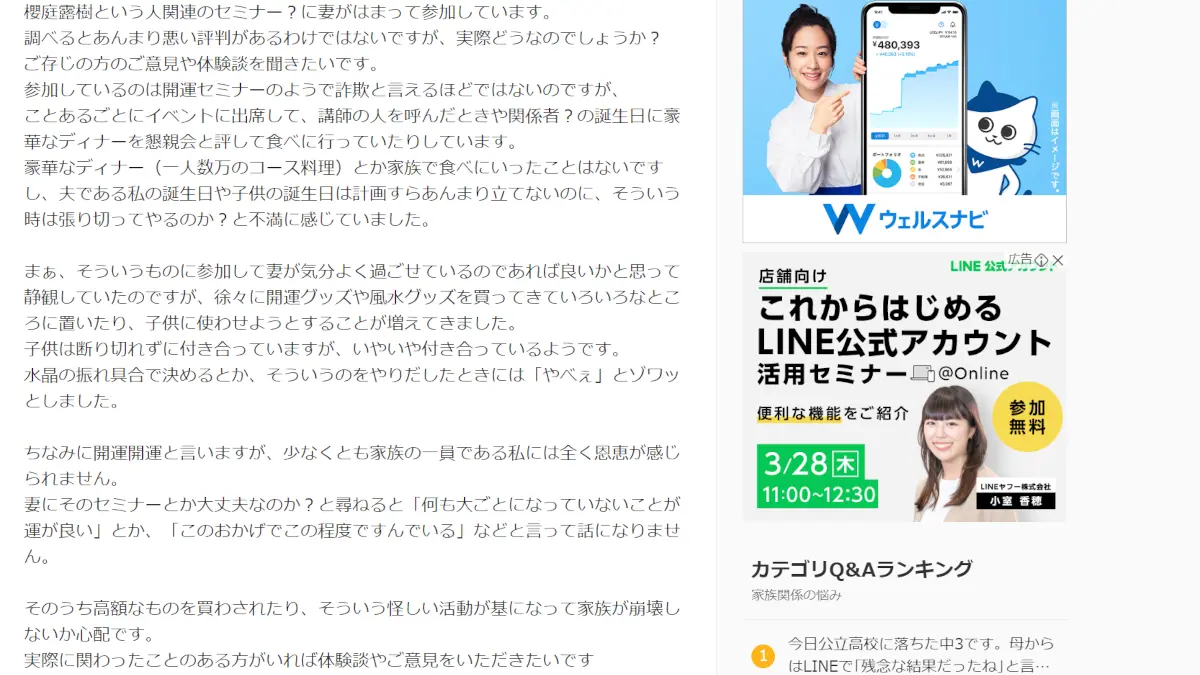 桜庭露樹のセミナーやサロンは胡散臭いし怪しいので警鐘を鳴らしたいと思う。桜庭露樹の評判や口コミが気になっていた方は参考にしてほしい。