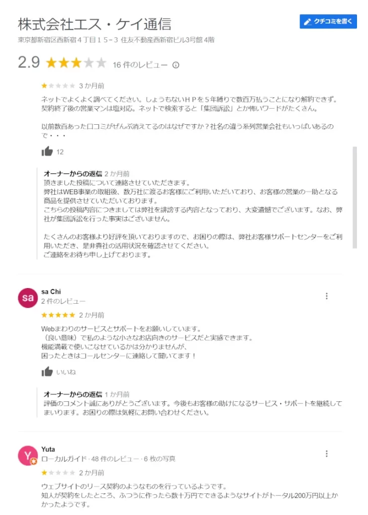 もちろんこの口コミが全てではありませんが、火のない所に煙は立たないという格言があるのも事実。廣瀨勝司の株式会社エス・ケイ通信と契約してしまうと同じ目にあってしまう可能性がある、というのは考えすぎでしょうか。株式会社エス・ケイ通信と契約を考えている方は、訴訟や裁判について入念に調べることをおすすめします。
