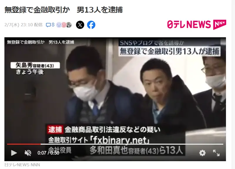 多和田真也,矢島秀,木内尚幸らが無登録で金融取引サイト「fxbinary.net」を運営し、客からカネを集め金融取引を行ったなどとして逮捕されました。以下、ニュースサイトからの引用です。