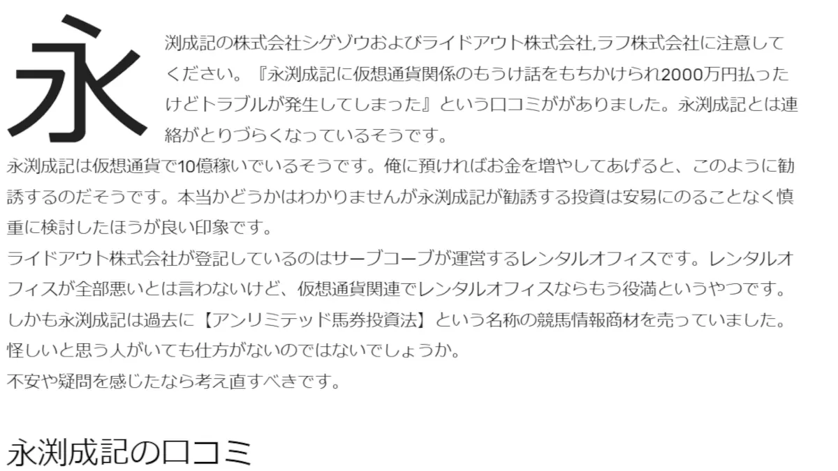 永渕は、仮想通貨の投資話で金銭トラブルが発生しているということで炎上しているような人物です。