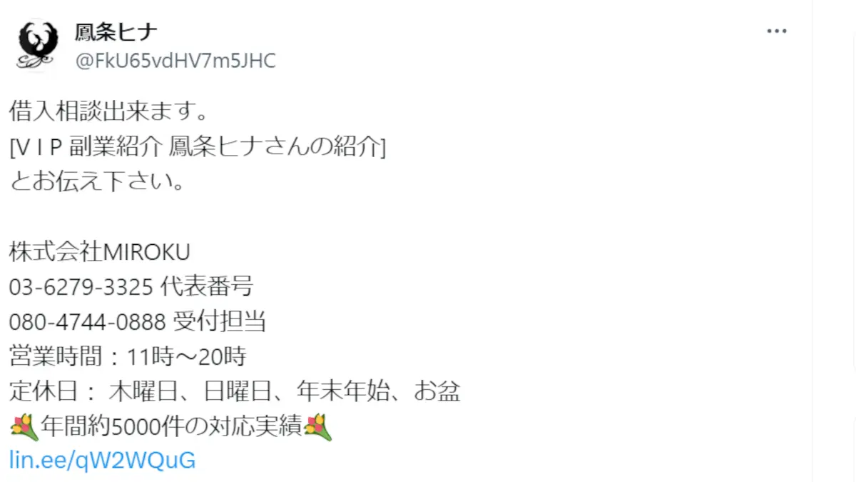 株式会社MIROKUの融資は〇欺だと告発するツイートがあったのでご紹介いたします。