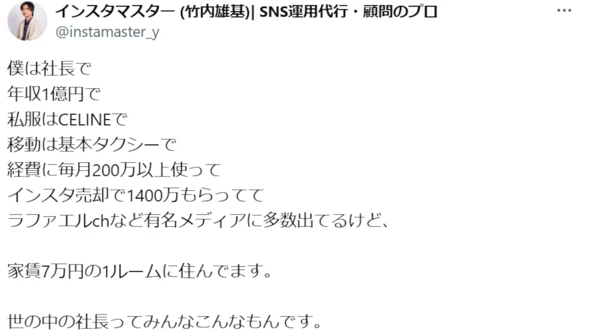 竹内雄基(インスタマスター)が怪しいという口コミ