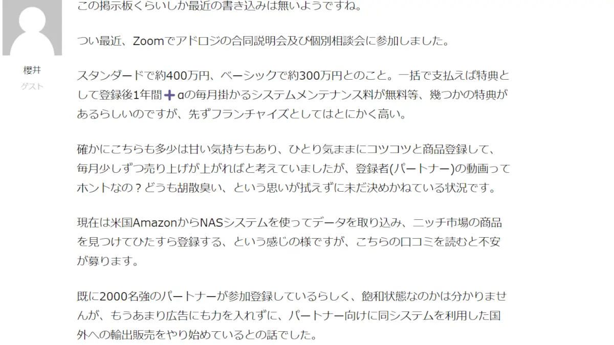 輸入物販システムアクセスの口コミ
