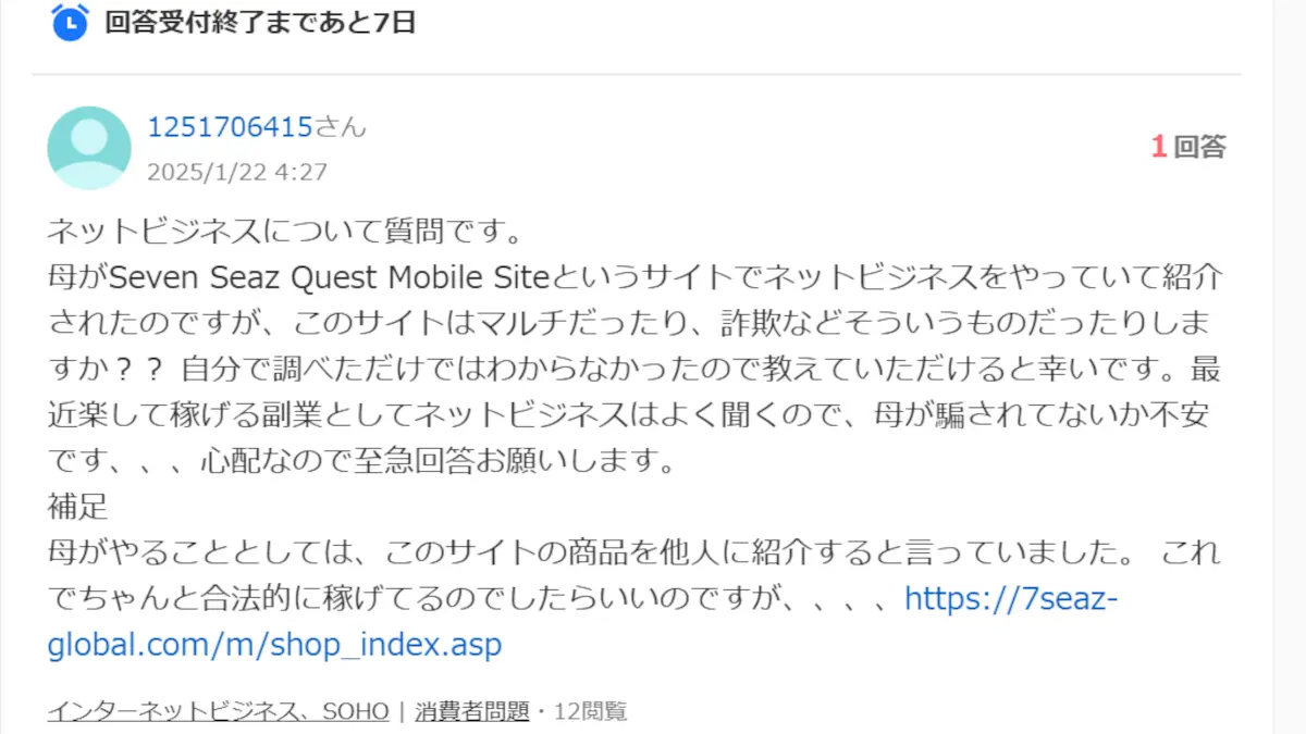 本サイトは、セブンシーズクエスト株式会社のネットワークビジネスの口コミを募集しています。お気軽に情報をお寄せください。