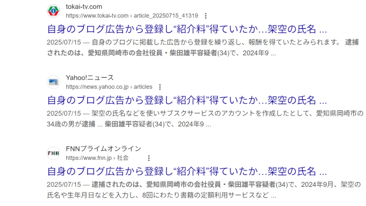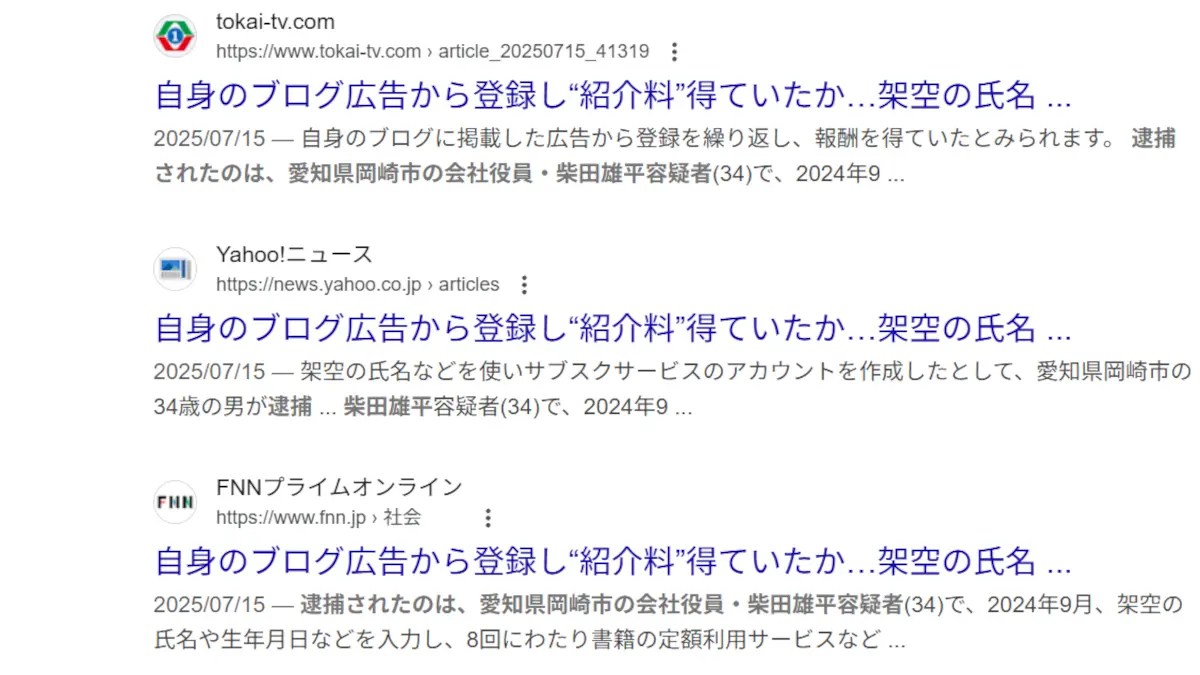 柴田雄平(愛知県岡崎市)が逮捕されているので情報共有させていただきます。愛知県岡崎市の柴田雄平は、架空の名義で動画定額サービスを不正契約したとして2025年7月、愛知県サイバー犯罪対策課に逮捕されています。