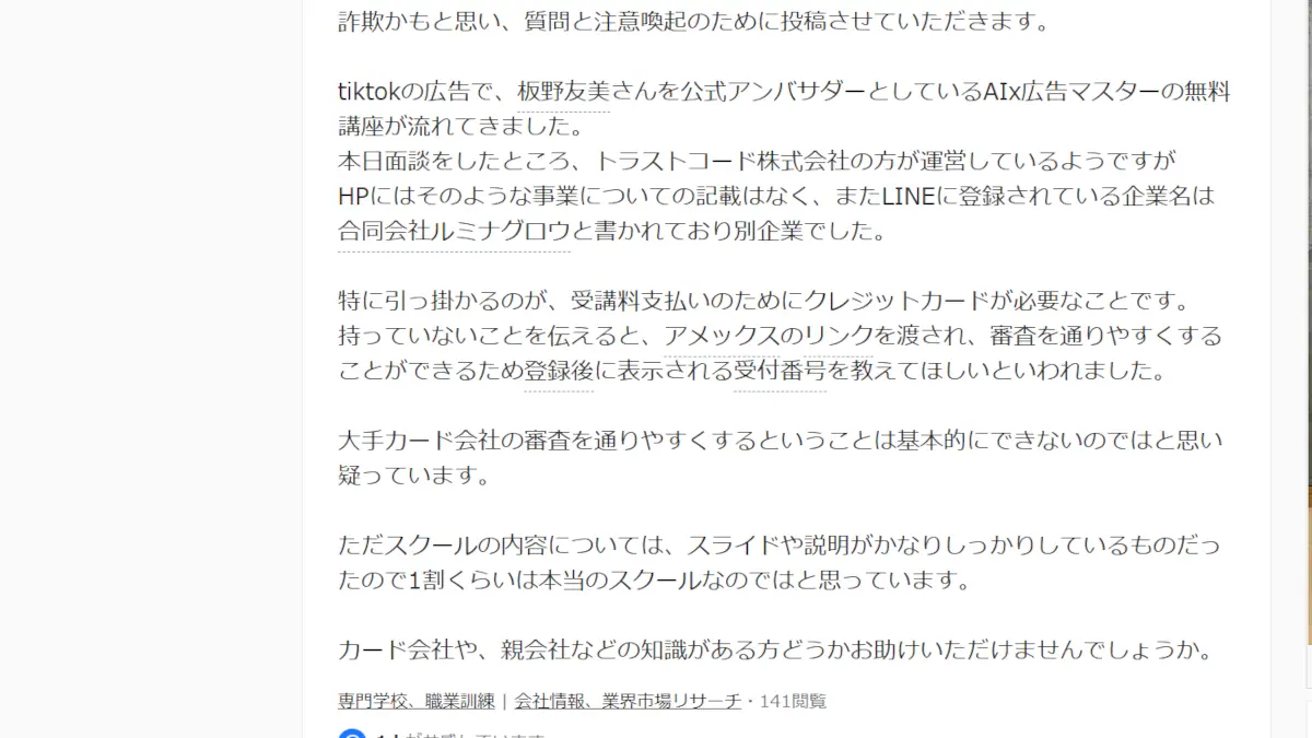 無料講座という点だけを見ると気軽に感じますが、その後に面談があり、どんな案内がされるのかは事前には分かりません。