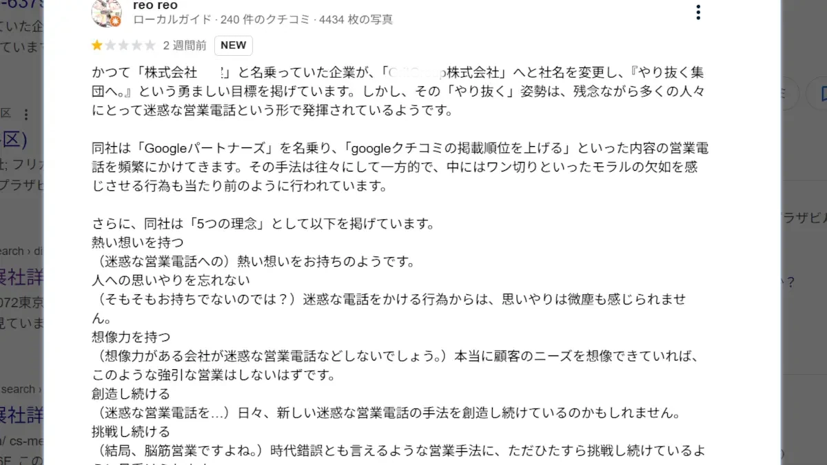 グーグル関連会社のふりをして営業をかけている会社なので注意する必要があります。