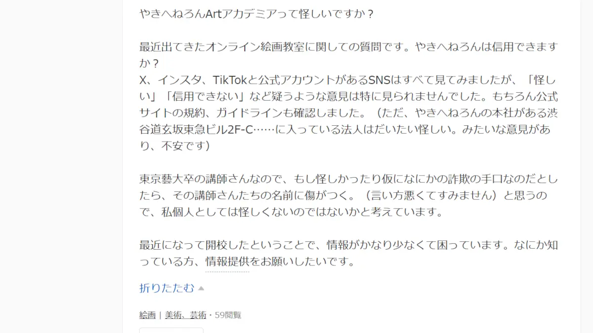 やきへねろんArtアカデミアがそういうことをしていると断言するわけではありませんが、こうした商法が社会問題となっていることは、あらかじめ理解しておくとよいでしょう。