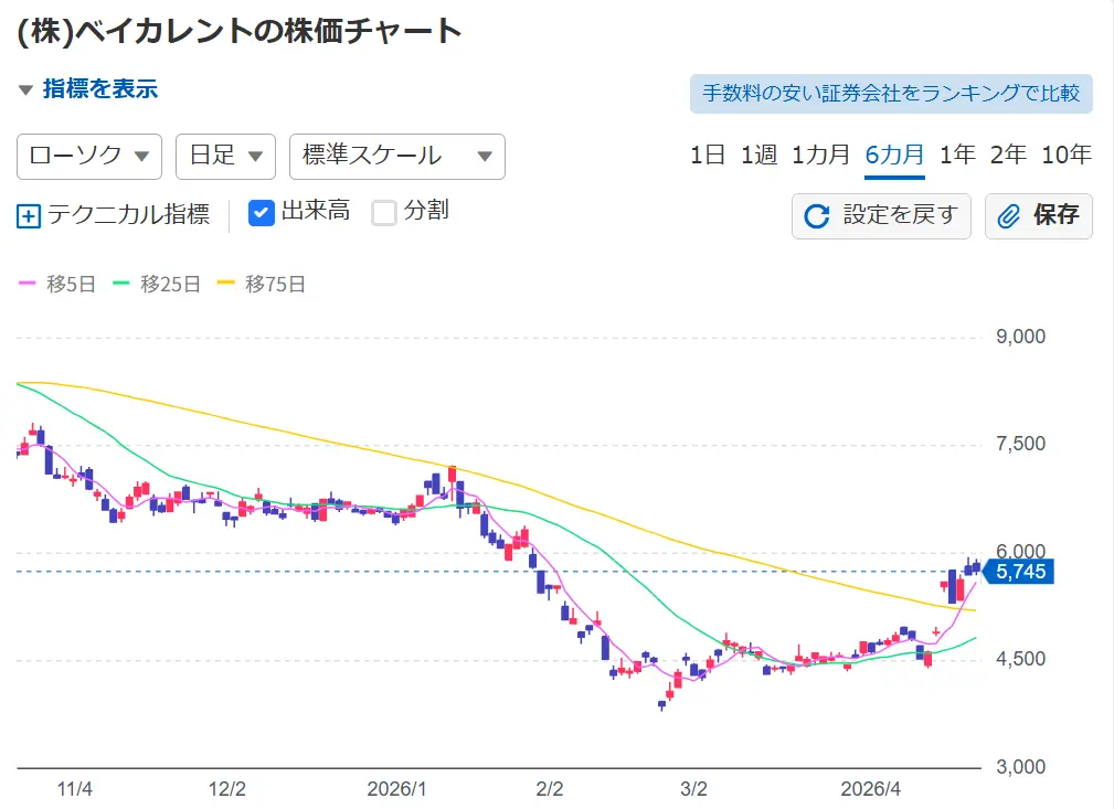 3月にベイカレントを4,000円で買い推奨された銘柄も