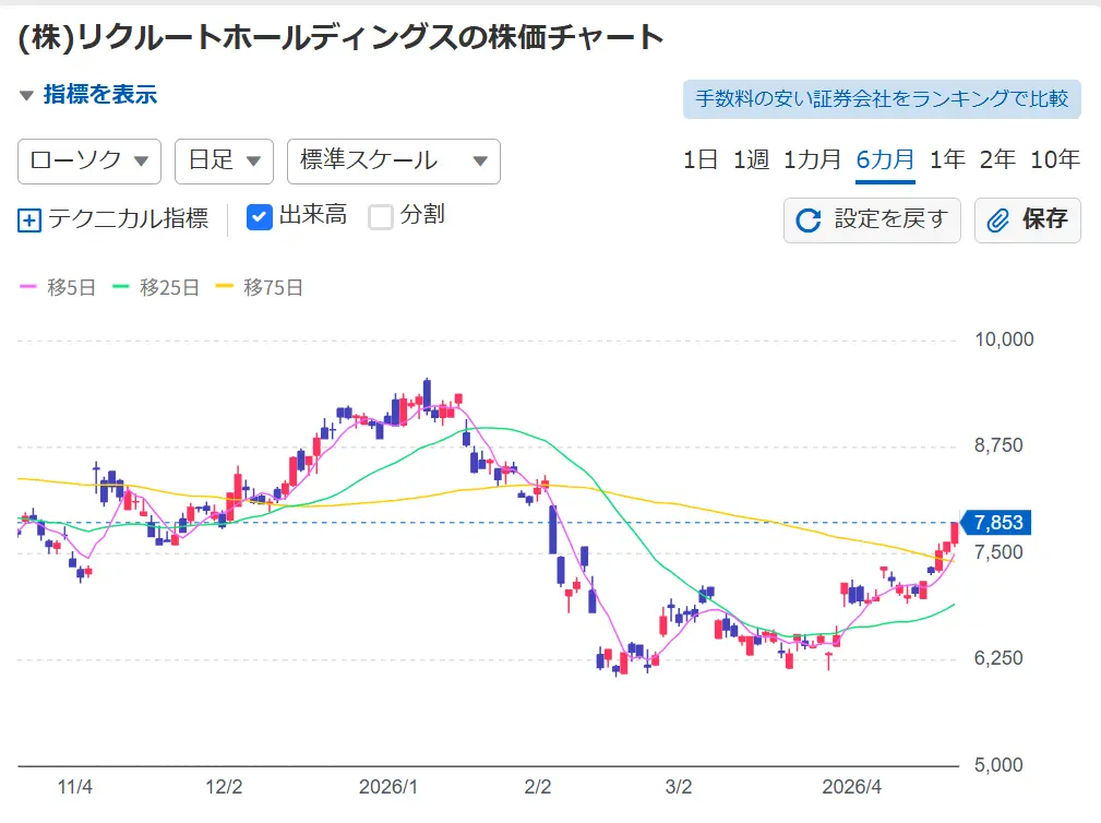3月にリクルートを6,300円で買い推奨された銘柄が
